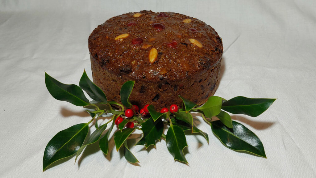£18 7” Iced Rich Fruit Cake made with our own eggs and generous quantity of fruit & alcohol
